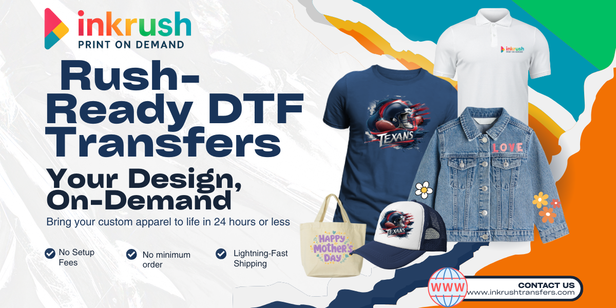 Whether you're creating apparel, custom merch, or unique product designs, InkRush delivers fast turnaround times, unmatched print quality, and reliable service you can count on.