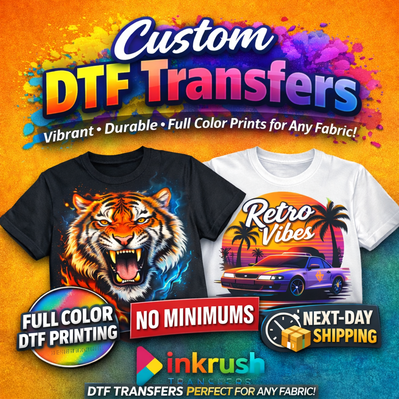 Welcome to InkRush Transfers, your trusted Northside Houston partner for high-quality Direct-to-Film (DTF) printing. We specialize in fast, vibrant, and durable DTF transfers, custom gang sheets, and UV DTF prints designed to bring your artwork to life with professional precision.