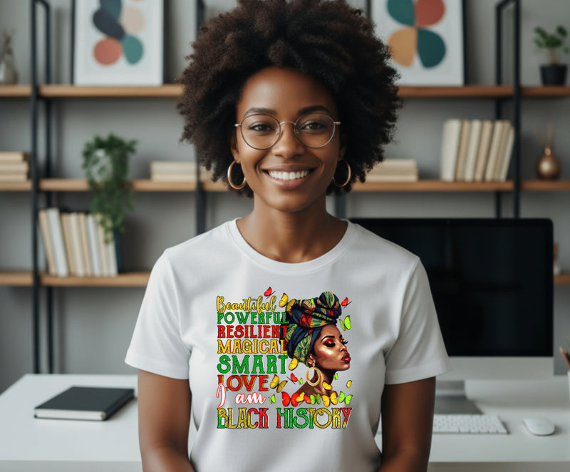 Celebrate natural beauty and heritage with this empowering design. This Black History DTF transfer showcases a serene African American woman, her hair blooming with botanical artistry. Perfect for creating unique apparel that honors culture and strength, appealing to those who appreciate thoughtful, art-inspired fashion.