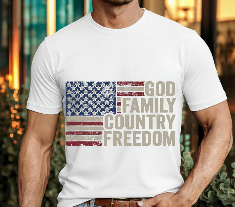God Family Country Freedom – Patriotic Christian USA Flag DTF Transfer