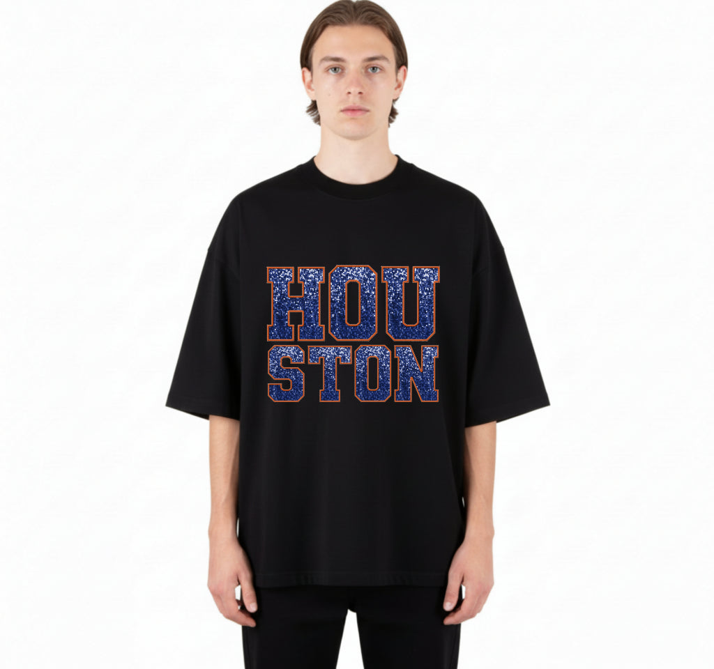 Show your Houston, Texas pride with this cow skull and stars DTF transfer. Features bold 'HOUSTON TEXAS' text and a rugged Western design, perfect for ready-to-press apparel.