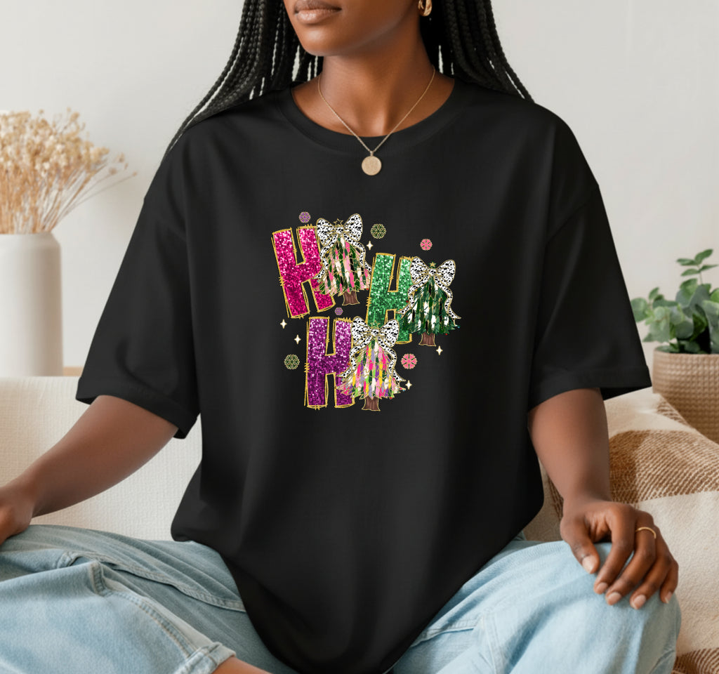 Festive ready-to-press DTF transfer featuring a classic stack of gift boxes with ribbons, holly, and 'Merry Christmas' text. Perfect for holiday apparel.