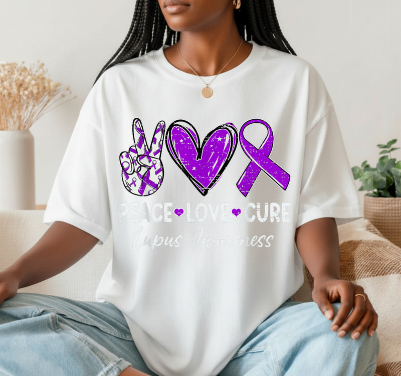 Peace Love Cure Lupus Awareness Warrior – DTF Transfer