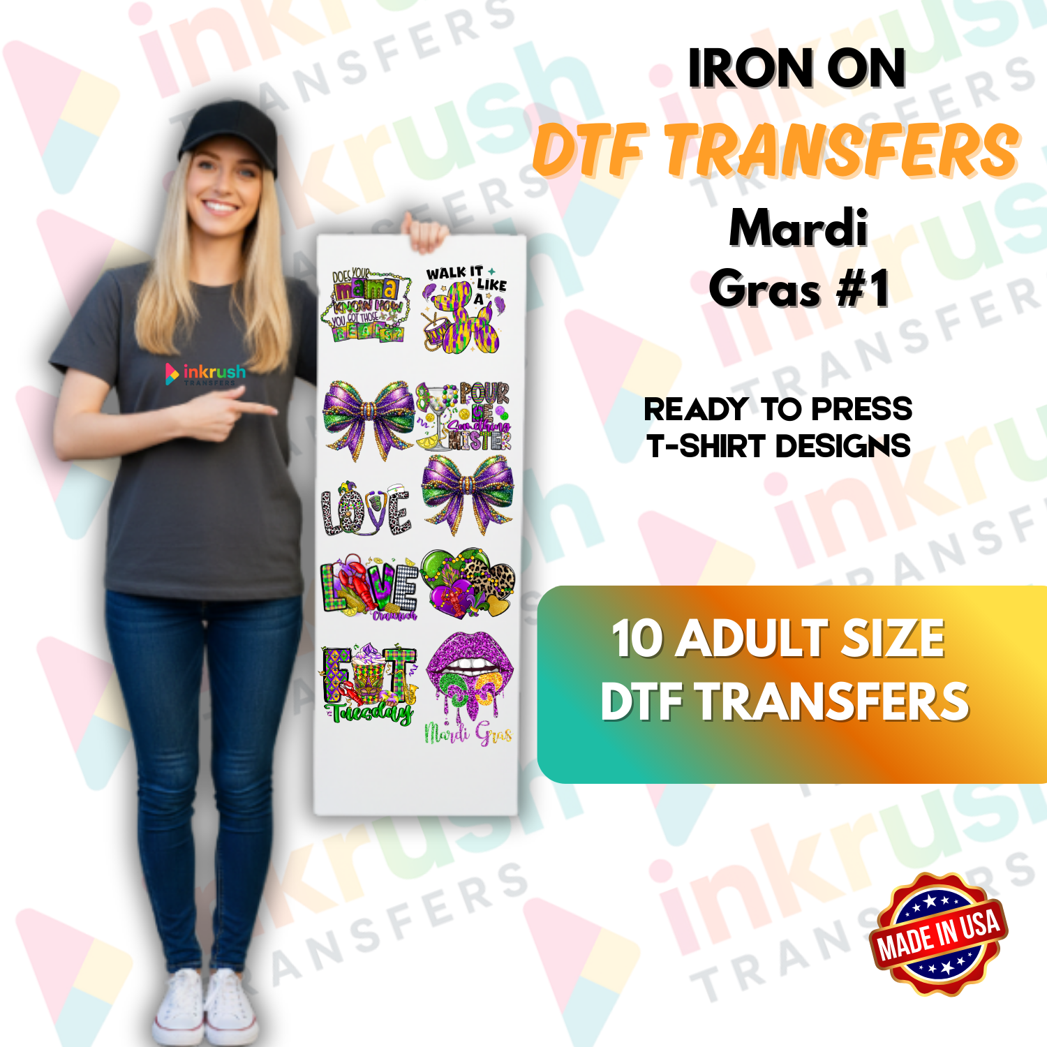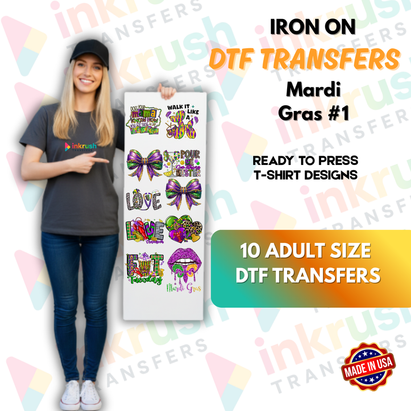Mardi Gras Bundle #1 – Classic Parade Essentials (22″ Gang Sheet, 10 Transfers)