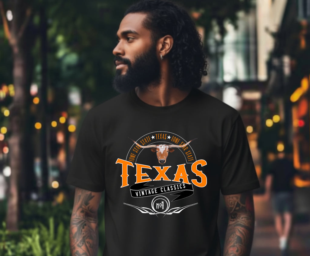 Embrace classic Texas heritage with this unique vintage DTF transfer. Featuring an iconic longhorn skull, Lone Star, crossed rifles, and "LONE STAR STATE" text, it's perfect for creating custom apparel. A ready-to-press design ideal for Texans, Western enthusiasts, and patriotic individuals.